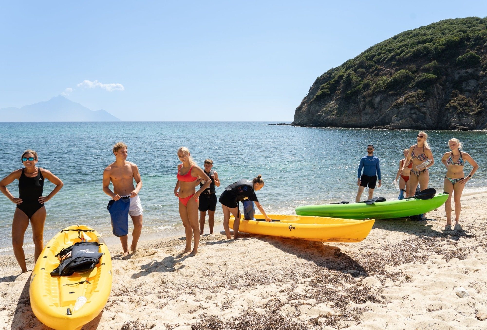 Die Götter müssen ihre Hände im Spiel gehabt haben, als dieses Stückchen Erde entstand. Allein die schöne Landschaft, das große Sportangebot und der lebendige Ort sorgen dafür, dass sich Erwachsene, Kinder und Jugendliche hier gleichermaßen wohl fühlen. Übrigens: Die Halbinsel Sithonia ist bekannt für ihre schönen, karibisch anmutenden Buchten. Nie überfüllt, findet man sie wie Perlen aufgereiht die Küste entlang. Es lohnt sich, mit Bike, Kajak oder dem Boot in eine der vielen Traumbuchten zu fahren, hemmungslos zu chillen und versonnen einen Sundowner zu schlürfen.