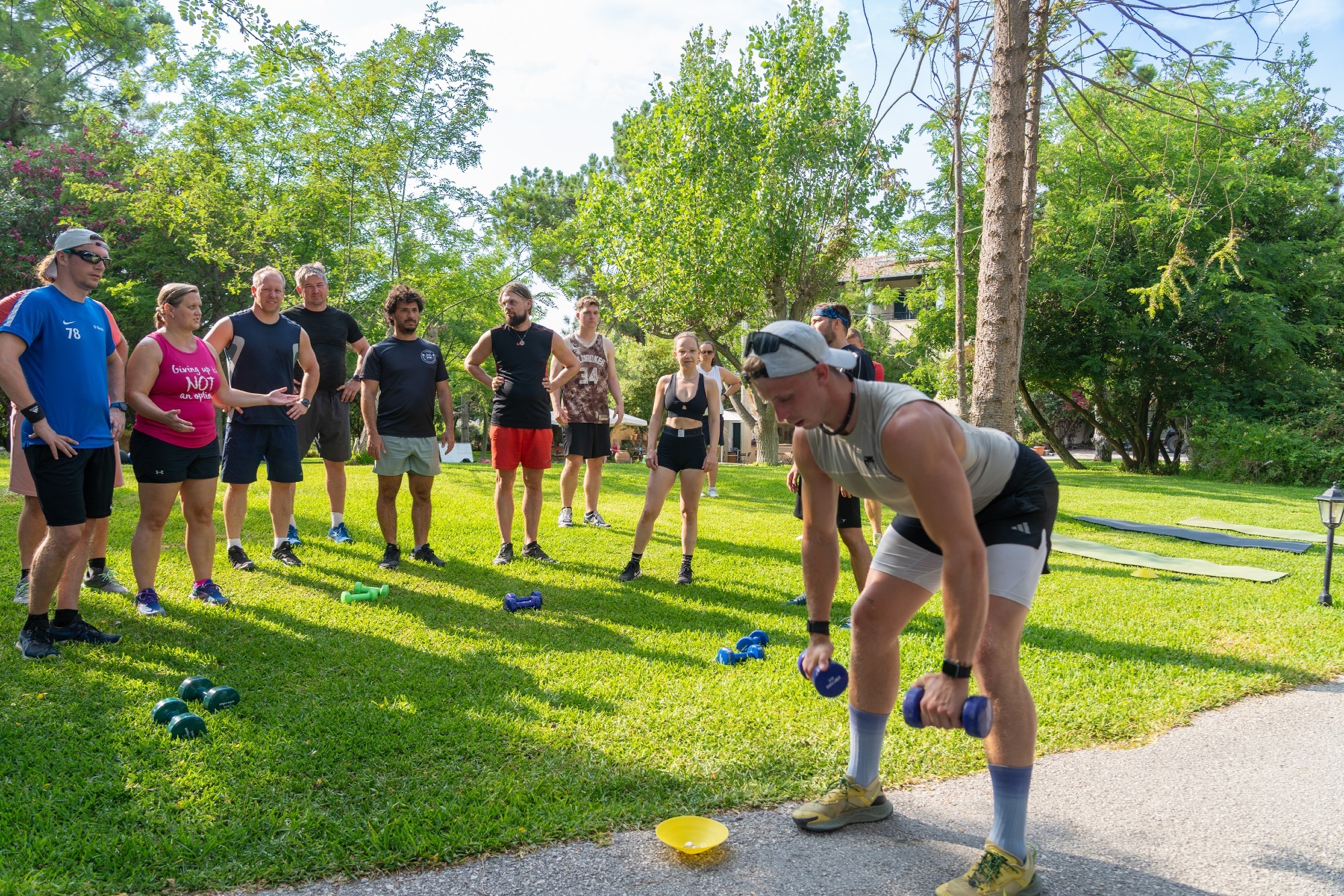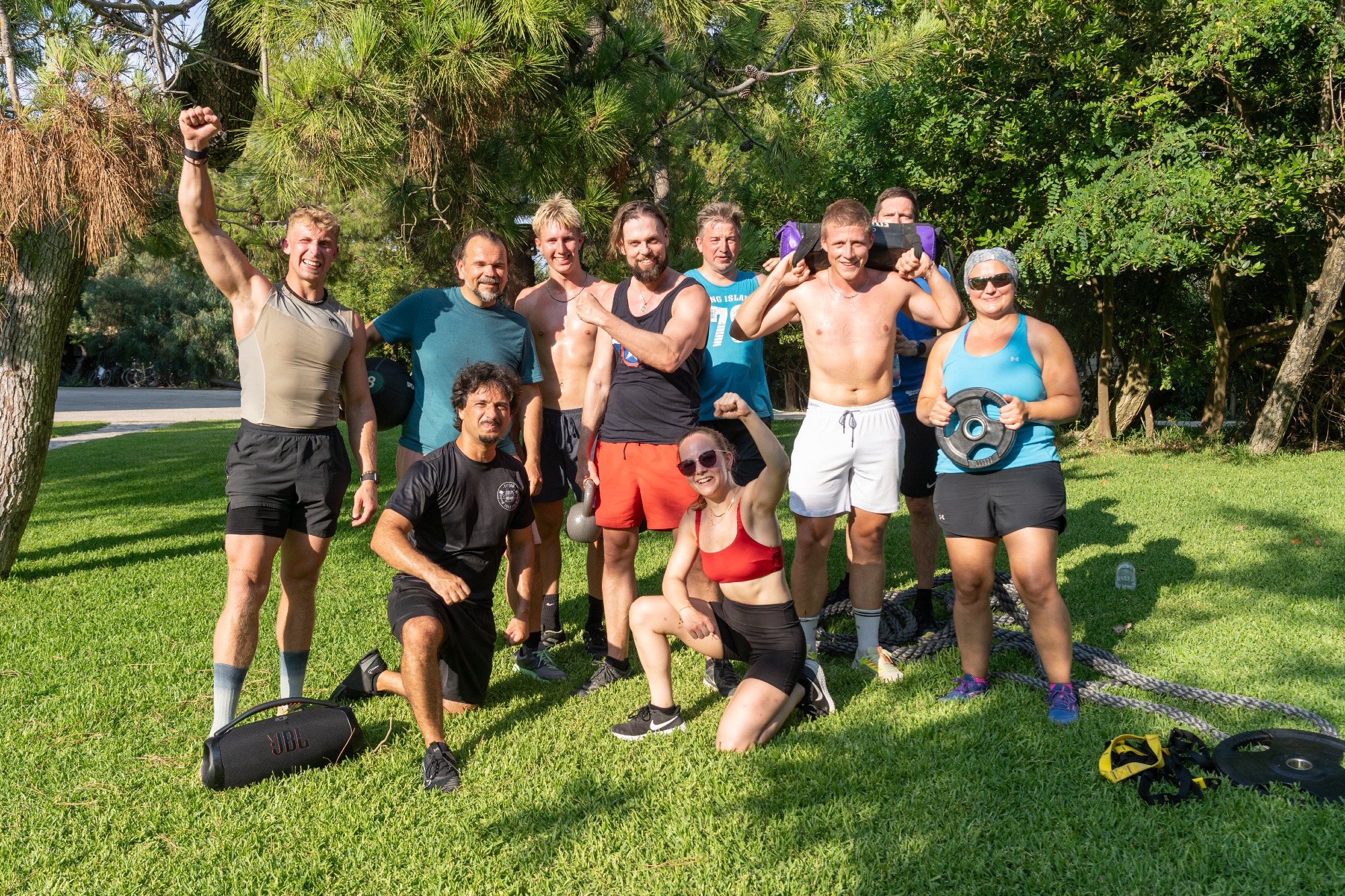 Es wird knackig! In kleinen Gruppen bieten wir euch jeden Tag mehrere Trainingseinheiten, die abwechslungsreich und perfekt aufeinander abgestimmt sind, und das Beste dabei: immer draußen an der frischen Luft! Outdoorfitness auf höchstem Niveau! Das knackige Programm besteht aus funktionellem HIIT-Zirkeltraining, Coretraining (Bauch, Rücken, Gesäß), TRX-Sling-Training, Laufeinheiten (am Strand), Mobility und Flexibility zur Entspannung. All das unter professioneller Anleitung eurer Personal Trainer und vor allem: gemeinsam im Team!