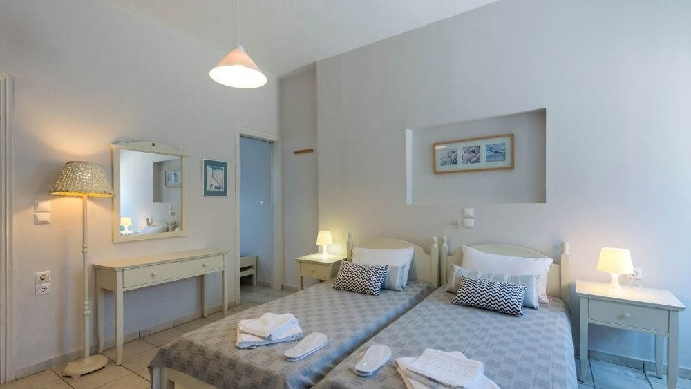 Unser kleiner Sportclub besticht vor allem durch die Lage direkt am Meer. Auch in der Hochsaison könnt ihr hier am kleinen hoteleigenen Strand entspannen - nicht zuletzt, weil auch Agios Andreas weder Hotelburgen noch überfüllte Strände aufweist. Trotzdem bietet der kleine Ort und vor allem das hübsche, etwas weiter entfernte Koróni genügend Abwechslung. Unser Sportclub ist einfach, auch wenn die meisten Zimmer bereits einen sehr modernen Komfort haben. Durch die tolle Lage und die Herzlichkeit unserer Gastgeberin Eirini ist das Aggelos ein Platz, an dem ihr euch sicher sehr wohl fühlen werdet.