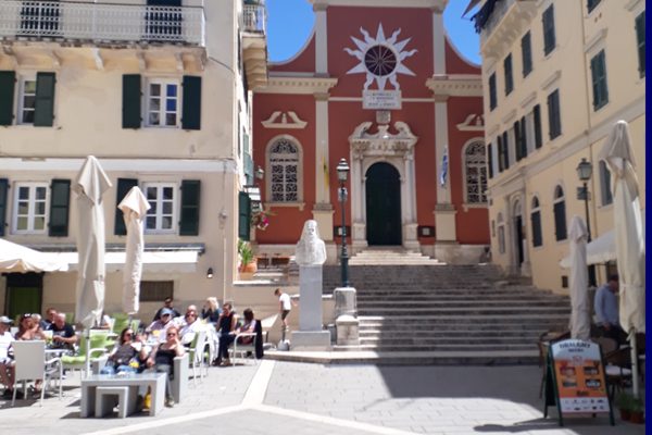 Korfu-Stadt ist bekannt für seinen Flair. Im UNESCO-Weltkulturerbe und touristischen Zentrum der Insel vermischen sich italienische und französische Einflüsse. Auf den zahlreichen Plätzen fühlt man sich wie in einer Kleinstadt an der Côte d’Azur - vor allem abseits der belebten Einkaufsmeile. Mitten in der Altstadt, gleich unterhalb der Metropol-Kirche Panaghia Spiliotissa, liegt ein kleiner, ruhiger Platz, den die meisten Besucher wohl kaum beachten würden. Vielleicht ist dieser Platz schon deshalb ein Geheimtipp, weil hier keine Schwämme, keine lustigen T-Shirts und auch keine Magnete in Inselform verkauft werden?
