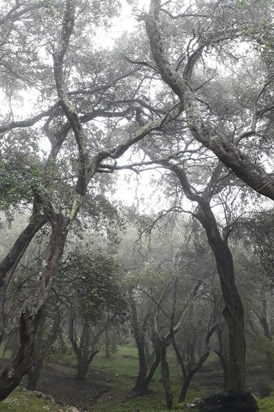 Wenn die Regenwolken tief über der Insel hängen werden die jahrhundertealten Olivenhaine im Dunst der Wolken zu verwunschen Landschaften.