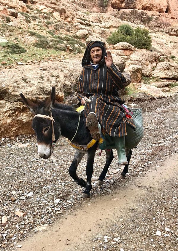 Wir übernachten bei einer Berberfamilie, ein tolles Erlebnis, das uns sehr nah an die Kultur heranführt. Wir essen das leckerste Tajine der Reise. Am nächsten Tag wandern wir weiter und passieren einsame Bergdörfer - touristisch fühlt sich das überhaupt nicht an.