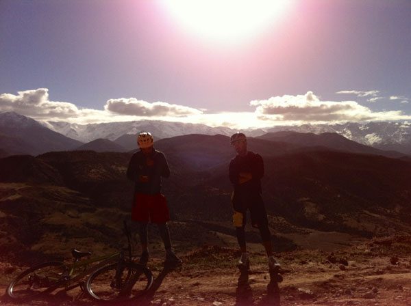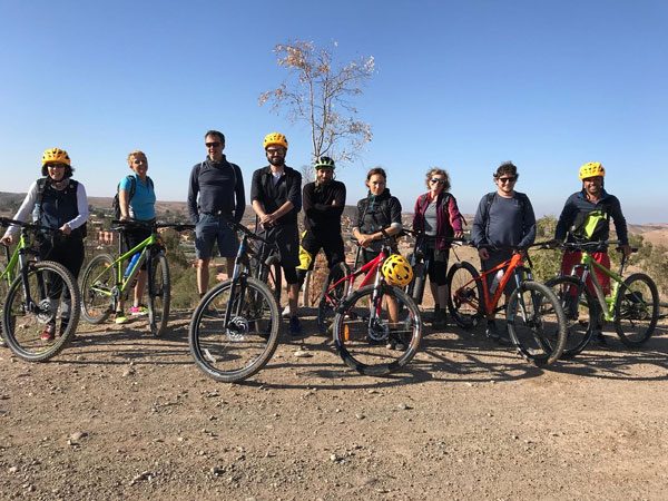 Wir bekommen Bikes und Helme gestellt, nach dem Check geht es los. Zunächst radeln wir bergauf, je höher wir kommen umso toller wird der Blick auf den hohen Altas - ein Traumpanorama mit schneebedeckten Gipfeln.
