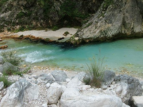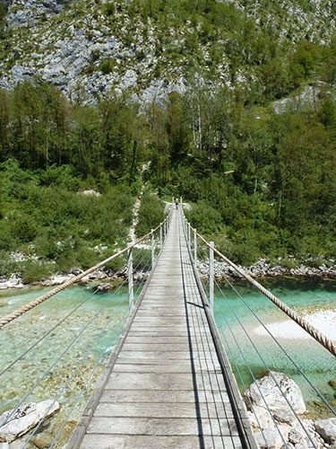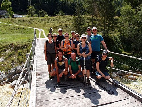 Die Etappe nach Bovec war einer der Entspanntesten, da sich die Höhenmeter in Grenzen hielten. Nachdem Sebastian, der uns bis dahin super betreut hatte, die alltäglichen Fragen, nach Pipi, Wasser und Sonnencreme gestellt und wir sie lachend mit ja beantwortet hatten, nahmen wir den Weg an der smaragdgrünen Soca wieder auf. Durch Wälder und über einige Holzhängebrücken wanderten wir durch den Triglav Nationalpark. Zwischen durch bot sich die Gelegenheit sich im Fluss zu erfrischen. Nach überqueren der Soca-Schlucht erreichten wir Bovec. wo wir den Tag in fröhlicher Runde mit dem einen oder anderen Getränk beendeten.