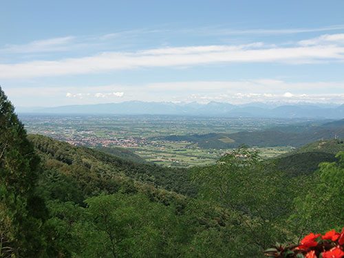 Endspurt. Nach einem typisch italienischen Frühstück und viel Kaffee traten wir unsere letzte Etappe nach Cividale del Friuli an. Bergauf und bergab ging es über Ebenen, Kastanienwälder und alten Weinländereien zum Wallfahrtsstädchen Castelmonte. Von dort aus wanderten wir stetig bergab und mit der Aussicht über die Po-Ebene durch alte italienische Bergdörfer. Mit jedem Kilometerschild kamen wir Cividale und dem ersehnten Eisbecher näher. Das Profil dieser Etappe war nicht besonders schwierig, allerdings liefen wir unter blauem Himmel und begleitet von der Sonne ca. acht Stunden. Froh, erschöpft und etwas traurig, dass die Tour vorbei war, ließen wir den Tag auf der Piazza bei Pizza und Aperol-Spritz ausklingen.