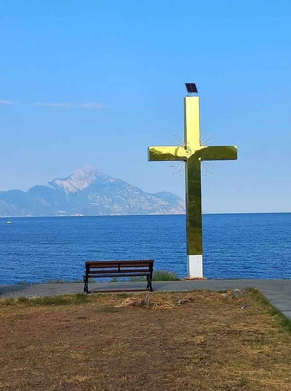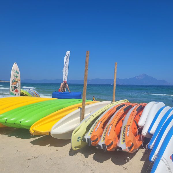 Das Mittagsmenü ist Preis-Leistungs-Verhältnis sehr gut. Die Wasserstation bietet den Frosch-Gästen Stand-up-Paddling-Kurse und Wassersportausrüstung an. Das Highlight ist der Ausblick auf den Athos-Berg, der je nach Tageslicht anders strahlt und somit die meistfotografierte Sehenswürdigkeit des Ortes ist.