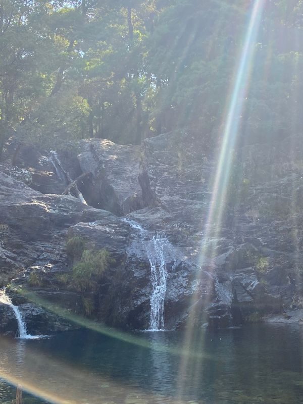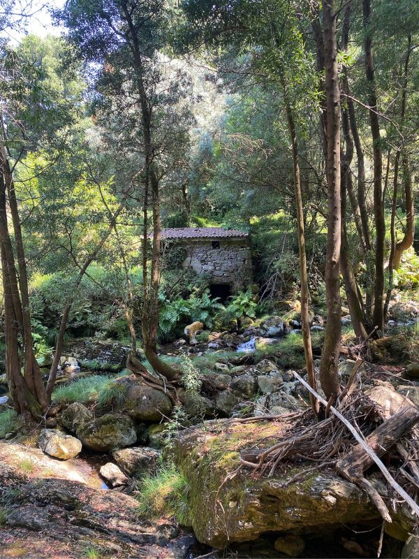 Donnerstags gab es die große Familienwanderung zum Pico Wasserfall, die für kraxelerfahrene Kinder ab 8 Jahren möglich war. Per kurzem Transfer (20 Euro, die sich lohnen!) wurden wir am Fuße der Serra da Arga abgesetzt und erreichten schnell den Wald. Auf insg. 6 km mit 230 Hm ergab sich 3x die Möglichkeit in die Gumpen zu springen und unter dem Wasserfall zu duschen. Das Wasser ist eiskalt, aber die Erfahrung absolut einzigartig.