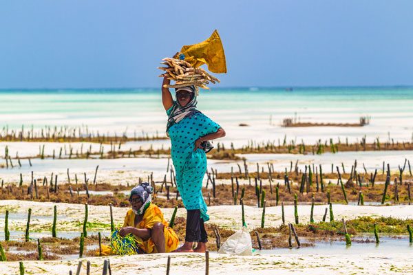 Frauen in den Küstendörfern von Sansibar sind Gärtnerinnen der besonderen Art. Ihre Felder liegen viele Stunden am Tag unter Wasser: Sie ernten Seegras.