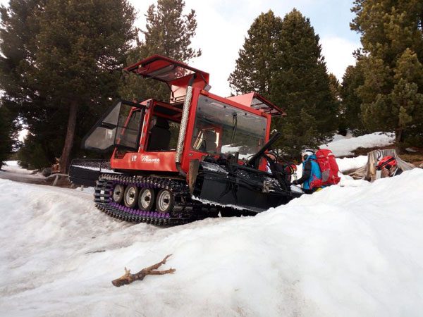 Im Laufe der Woche müssen wir tatsächlich mit Rucksack fahren (übrigens ein tolles Erlebnis!)…wie wäre das wohl mit einem Koffer gewesen? Außerdem ist der Platz im Transfer tatsächlich begrenzt; einmal fahren wir mit der Pistenkatze (sieben Skifahrer, Skier, Rucksäcke): da ist wirklich sehr wenig Platz.