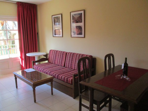 Die Appartements im Tres Palmeras sind wie beschrieben geräumig, hell und funktional eingerichtet. Die Küchenzeile mit Kühlschrank und die Ausstattung mit den wichtigsten Dingen waren praktisch, wenn man mal keine Lust hatte essen zu gehen oder daheim gefrühstückt hat. Ein Bäcker und der Spar waren gleich ums Eck.