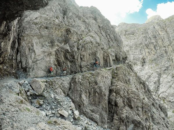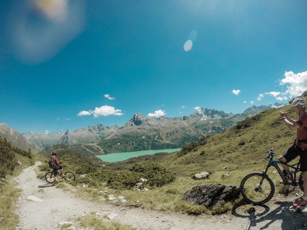 Wie versprochen erwartet uns ein wunderschöner Flowtrail S2. Nach einigen weiteren Tiefemmetern kehren wir in der Schweiz zu einer Mittagsrast ein, bevor wir Richtung der alten Zollstation Altfinstermünz weiterrollen. Jetzt kommen die Höhenmeter und wir greifen den Uphill nach Nauders an.