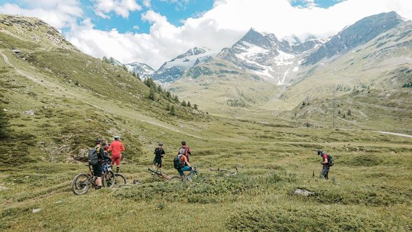 Wo Profifahrer im Höhentraining sind, fahren wir unsere erste kernige Bergetappe in die Bikepark-Region Livigno. Neben uns befinden sich zahlreiche Bikeparklines und wir folgen einem traumhaften Naturail an der Bergflanke in Richtung Passo Forcola.