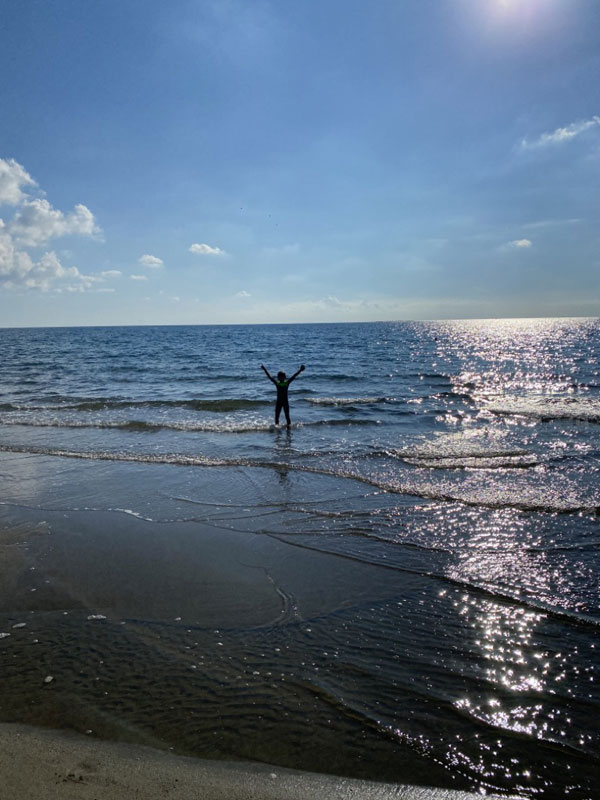 Donnerstags gab es keine Kinderbetreuung, so dass wir über Blue Soul ein Auto gemietet hatten. Wir hatten uns gegen die langen Ausflüge zur Amalfi-Küste, den Vesuv und Pompeji entschieden, da die Transferzeiten mit 2,5 Stunden pro Strecke für uns zu lang waren für eine Woche Urlaub. Und so fuhren wir eine schöne Runde durch den Cilento, besuchten die beeindruckende Ausgrabung in Paestum, aßen ein hervorragendes 3-Gänge-Büffel-Menü auf der Büffelfarm von Barlotti, schlenderten durch die niedlichen Städtchen Agropoli und Castelabate mit einer herrlichen Fahrt durch die Berge und entlang der Küstenstraße. Zum Sundowner machten wir Halt in Oligastro Marina – erfreulicherweise öffnete ein Hotel am Strand seine Terrasse extra für uns.