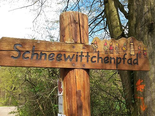 Nach einer weiteren Stunde Gehzeit wurde noch eine kurze Pause eingelegt bei einem großen Holzzwerg – und wo bleibt der Prinz? Und Schneewittchen haben wir auch noch nicht gesehen J Obwohl wir kurze Zeit später sogar das Schild passierten, dass wir auf dem „Schneewittchenpfad“ unterwegs sind ;-) Aber vielleicht warten die ja noch auf den Sommer :-)