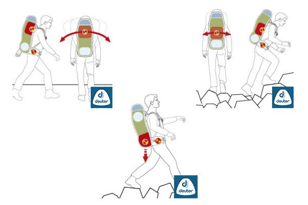 In schwierigem Gelände (Hochtour, Steige) und mit großem Trekkingrucksack auf dem Rücken werden schwere Gegenstände etwas tiefer und damit näher zum Körperschwerpunkt gepackt. So seid Ihr beim Laufen nicht so leicht aus dem Gleichgewicht zu bringen, auch wenn Ihr zum Ausgleich des Gewichts etwas weiter nach Vorne gebeugt geht. Unsere Freunde von Deuter veranschaulichen Euch das in einer kleinen Grafik in der Bildergalerie.