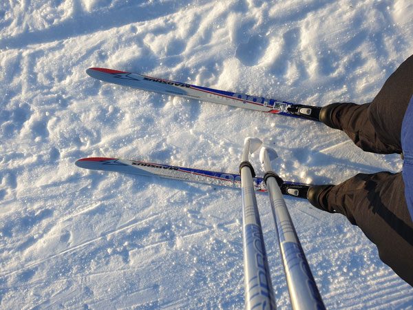 Hier konnten wir unsere Ausrüstung für die nächsten Tage ausleihen, speziell aber auch die Langlaufausrüstung für die darauffolgende erste Einweisung ins Langlaufen auf der Hausloipe. Meine ersten Versuche des Langlaufens waren, der ziemlich vereisten Loipe geschuldet, jedoch nicht gerade erfolgreich, so dass ich anfänglich erstmal gründlich die Nase voll hatte vom Skilanglauf.