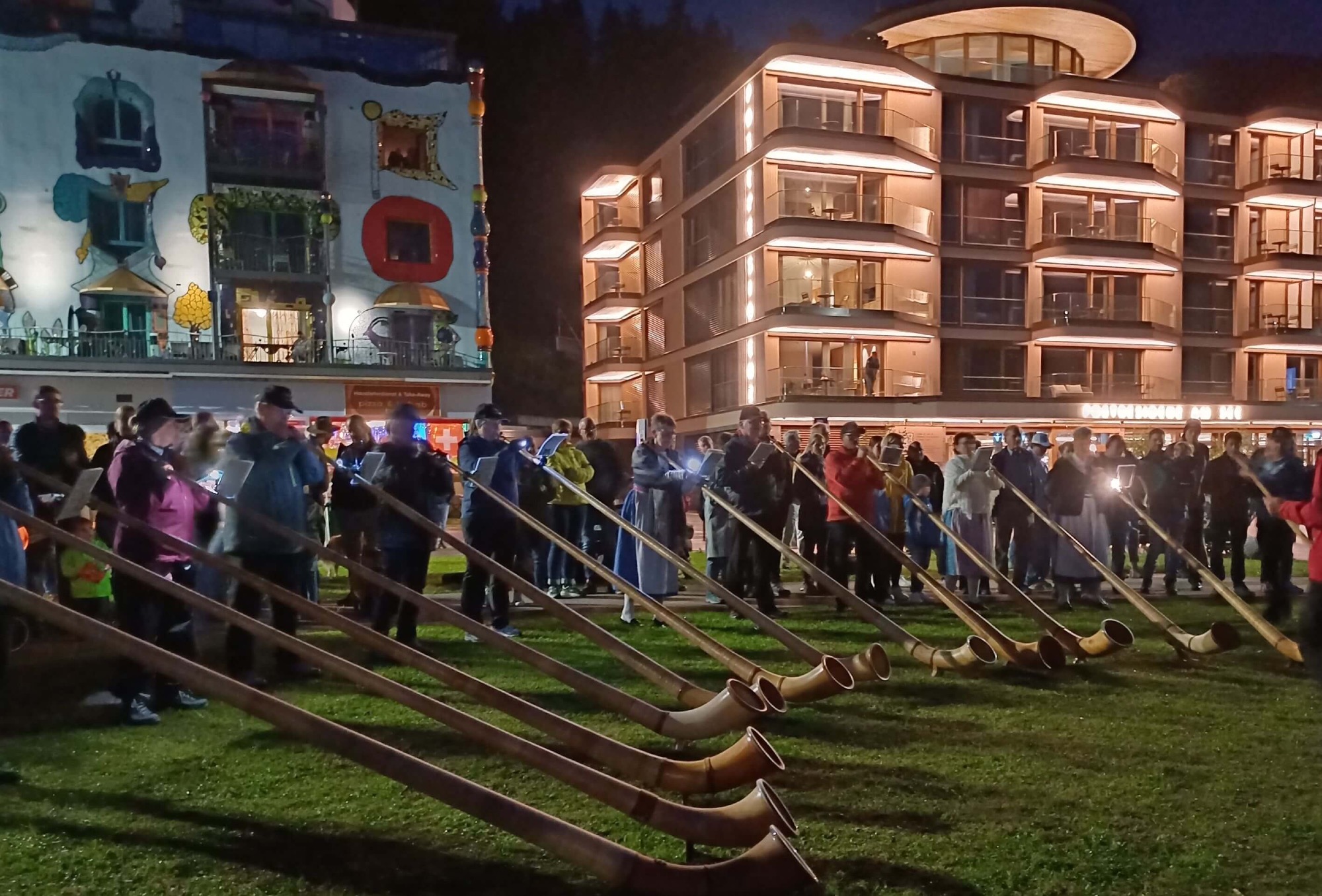 Das abschließende Highlight des Urlaubes war dann der Nationalfeiertag am Freitag, den 1. August 2025, der in Arosa sehr stimmungsvoll zelebriert wurde. Abends versammelte sich die Dorfgemeinschaft samt Touristen an einem in der Ortsmitte gelegenen See. Dort wurde dann von einem professionellen Sänger in allen vier Schweizer Amtssprachen die Nationalhymne vorgetragen. Danach gab es ein Alphornkonzert und eine Lichtshow über den See.