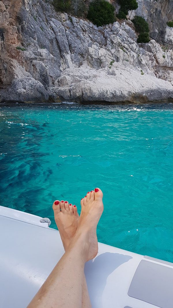 Wir hielten an zauberhaften Buchten, an einem Strand mit fast weißem Sand, wir sprangen vom Boot aus in türkis-blaues Wasser, fuhren mit dem Boot in enge Höhlen und Felsspalten hinein. Francesco erzählte uns auch allerhand über die besonderen Orte, deren Entstehung und Bedeutung. Nach einem letzten längeren Halt in der Cala Luna Bucht düsten wir zurück übers Meer.