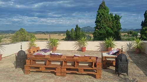 Am Samstag kamen wir gegen Mittag in der Finca an. Wir hatten uns für einen Mietwagen entschieden um flexibel zu sein, Ausflüge zu unternehmen. Mit Hilfe der Wegbeschreibung, die wir vorher angefragt hatten, konnten wir es super finden. Auf der Lazy Finca nahm uns Jill herzlich in Empfang und zeigte uns die Räumlichkeiten und die Außenanlagen. Unser Zimmer hatte eine große Dachterasse, welche einen tollen Weitblick hatte und mit originellen chilligen Möbeln aus Europaletten ausgestattet war.