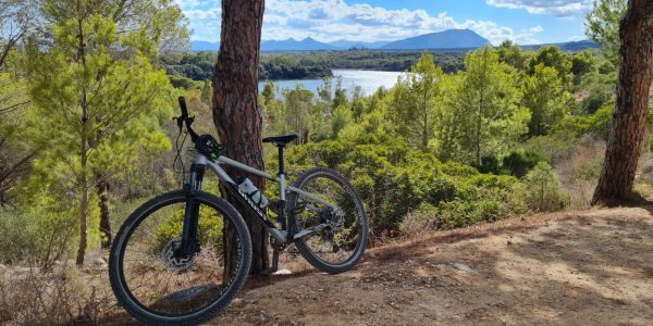 Durch das wunderschöne Naturschutzgebiet im Biderosa-Park ging es vorbei an einem Binnenmeer, gesäumt von Pinienwäldern über einen schönen Singletrail bis zu einem tollen langen Sandstrand.
