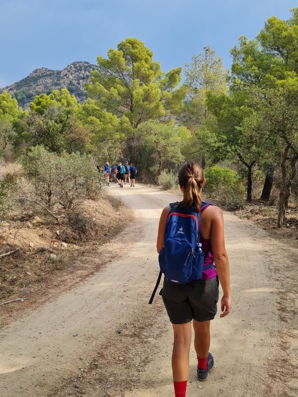 Am Montag ging es los mit einer Panoramawanderung. Und die machte ihrem Namen wirklich alle Ehre. 12 km und circa 200 Höhenmeter haben sich gelohnt. Zu Beginn ging es durch kühle Pinienwälder im Biderosa-Park, und schließlich wartete nach einem moderaten Anstieg eine grandiose Aufsicht auf grüne Wälder, Binnenmeer und Meer sowie Berge auf uns. Traumhaft.