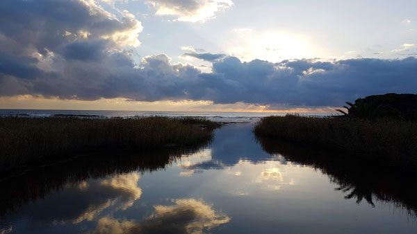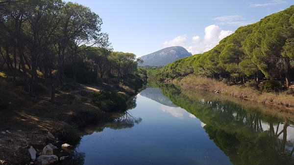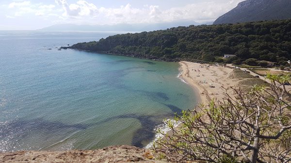 Montag gibt es dann die Tour bis Orosei. Mit zwei Bussen geht es nach dem Frühstück bis zum Meer, von dort an einem Flusslauf entlang, an Pinien vorbei, bis es dann auch durch Sand geht. Bevor es dann an eine schöne Strandbar geht, erklimmen wir noch einen kleinen Miniberg, von dem wir aber eine wunderbare Aussicht auf die Küste mit dem herrlich türkisen Meer haben.