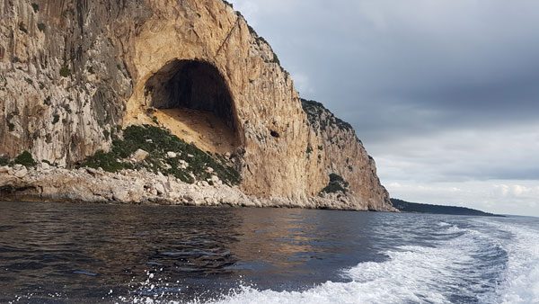 Dienstagmorgen gibt es zum zeitigen Frühstück einen schönen Sonnenaufgang. Treffen für den Ausflug zur Cala Luna ist um 8:45 Uhr. Mit dem Bus geht es nach Orosei zum Ableger. Schuhe aus, Rucksack wird schnell verstaut und dann geht es mit dem Schnellboot auch schon an der Küste entlang zum Ausgangspunkt.