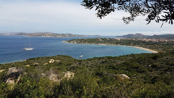 Einen Abstecher zum Hafen machen wir auch noch, dann geht es zum nächsten Stopp, dem Bärenfels (Capo d'Orso). Hier erklimmen wir die vielen Stufen und leicht ansteigenden Wege auf den Gipfel, von wo man eine traumhafte Sicht über die Buchten und Strände hat. Gut, dass es nicht mehr grau in grau ist und die Farben einfach nur um die Wette strahlen.