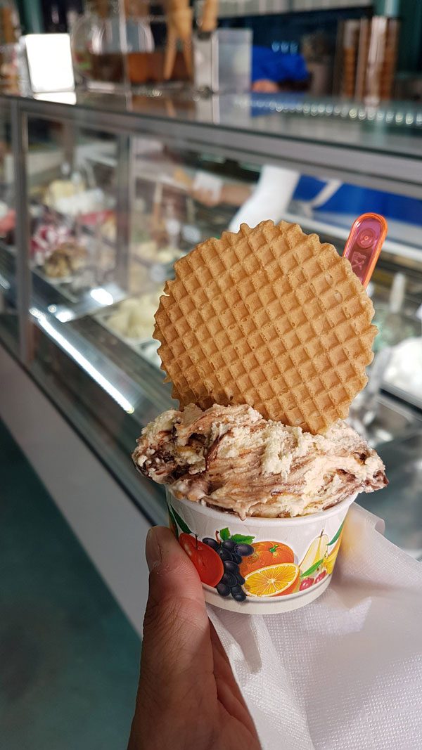 Natürlich folgt ein Eisstopp in Orosei. Danach gehen wir noch eine Runde laufen, bevor es gleich danach zum Abendessen geht. Heute ist das Vorspeisenbuffet nochmal beeindruckender, danach ist Pizzaabend mit diversen verschiedenen Sorten. Lecker! Als Ausklang gibt es noch ein Spiel, wo Titelsongs von Serien und Filmen erraten werden müssen. Sehr lustig.