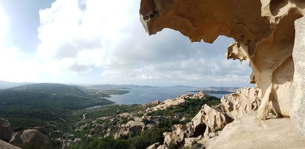 Donnerstagmorgen erwache ich von viel plätscherndem Wasser – es regnet in Strömen! Trockenen Fußes ist es nicht möglich, in den Frühstücksraum zu gelangen. Der anstehende Ausflug zur Costa Smeralda schlägt ein wenig auf die Stimmung. Aber dank Wetter-App ist eine Beruhigung da, es soll gegen 10 Uhr aufhören. Dir Radler fahren daher heute auch später los als geplant. Der Ausflug startet pünktlich um 8:30 Uhr. Zunächst geht es bis hinter Olbia, irgendwann entdecken wir auch die ersten blauen Himmelfetzen. Die Nachricht, dass im Süden der Insel, wo seit Tagen Unwetter toben, eine Brücke den Regenmassen nicht standgehalten hat, ist doch erschütternd.