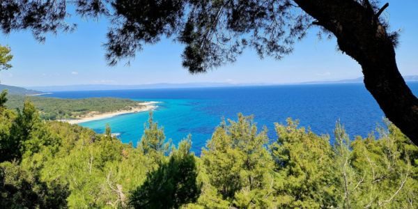 Organisierte Touren lassen sich über den persönlichen Bereich auf der Frosch-Website buchen. Eine ganztägige Bustour mit Wanderung hat uns einmal rund um die Halbinsel von Sithonia geführt. Von einem Punkt aus konnte man das gegenüberliegende Kriopigi mit dem Poseidon View erahnen.