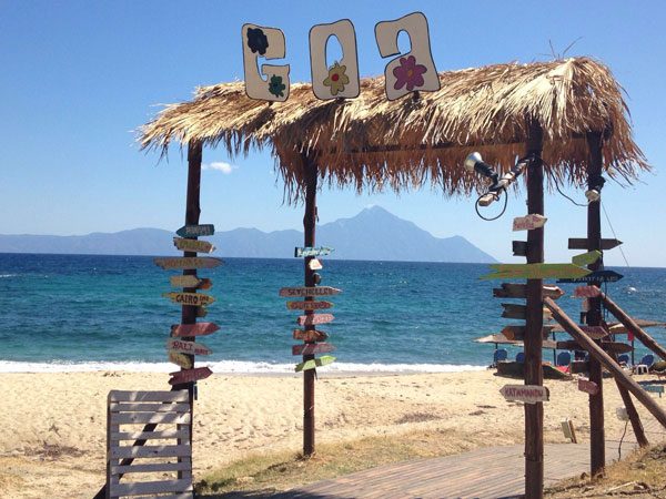 Wir paddeln auf die Goa Beachbar zu. Beim Anlanden hilft der Guide, unsere Boote aus dem Wasser zu ziehen. In der Hauptsaison hat die Bar geöffnet und wir können uns hier ein wenig stärken. Der Name der Bucht kommt durch die Beachbar. Hier ist am Wochenende der Name auch Programm. Wer auf elektronische Musik steht, ist hier genau richtig. Wer also am Sonntagmorgen nicht zur Froschinfo muss, kann hier bis zum Morgen zur elektronischen Musik tanzen.