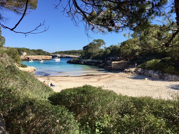 Der Strand Caló des Moro ist ein wirklicher Traumstrand: Das Wasser ist kristallklar, der Sand fast weiß. Der gesamte Untergrund sowohl an Land als auch im Wasser besteht aus diesem Sand und nur ein paar flache (und nicht scharfkantige!) Felsen unterbrechen diesen. Dazu der weite Blick auf die beeindruckende Felsküste!
