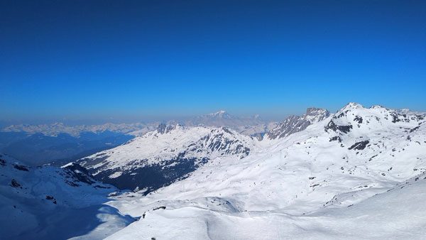 Von der Gipfelstation der Saulire-Express Gondel hat man bei guter Fernsicht einen der besten Ausblicke auf den Mont Blanc.