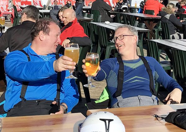 Da wir keine unvorhergesehenen Zwischenfälle hatten, kamen wir schon pünktlich um 08:45 Uhr am Ziel an und hatten ausreichend Zeit zum Frühstücken. Die Verteilung der Skipässe war bestens organisiert, so dass wir schon kurz nach 10:00 Uhr im Lift saßen.