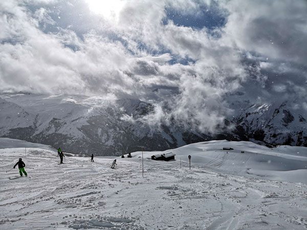Früh am Morgen sollte man auf jeden Fall zum Mont Vallon fahren, da die Abfahrten hier aufgrund der Höhe besonders gut zu fahren sind. Dazu gibt es auch hier sehr schöne Ausblicke (Gletscherblicke inklusive).