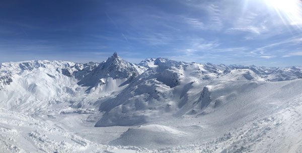 Les Menuires ist nicht ganz unser Geschmack, hier knubbelte es sich extrem und die Übergangslifte in die anderen Teilskigebiete waren zu unserer Zeit im März erst später am Vormittag geöffnet, so dass man lange anstehen musste. Wir hatten 5 Tage Kaiserwetter und einen Tag ergiebigen Schneefall (Dienstag), der uns genau die richtige Menge Neuschnee für die Folgetage gesichert hat. Für die Feierwütigen: Richtig gute Musik gab´s in der Skihütte „Roc Seven“ in Les Menuires. Top DJ. Und die Clubmusik wurde dazu noch mit Live-E-Gitarre begleitet. Hat man auch nicht alle Tage.