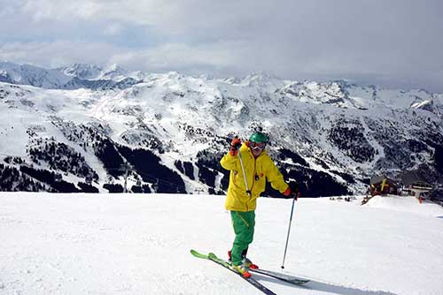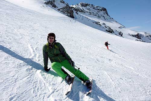 Der Schnee sollte mit uns kommen, es kam aber nur die Sonne und warme Temperaturen. Auch wenn die Orte, insbesondere Val Thorens mit 2.300 m, schon sehr hoch liegen, waren gute Bedingungen erst ab dieser Höhe gegeben.