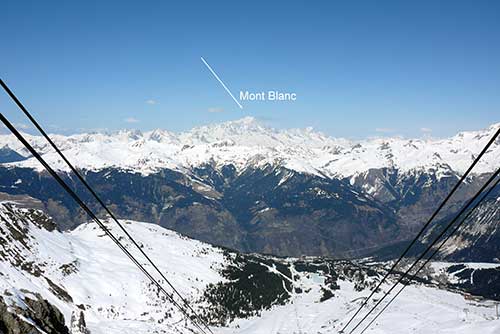 Von der Gipfel Station der Saulire-Express Gondel hat man bei guter Fernsicht einen super Ausblick auf den Mont Blanc.
