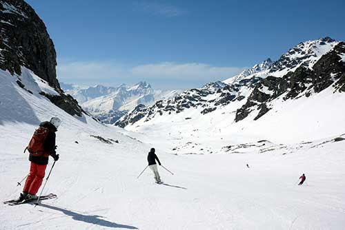 Schönste Abfahrt die rote boismint am Rande des Gebietes und die Pisten die von der Peclet-Gondel wegführen. Lohnenswert ist hier die Abfahrt nach Orelle und drüben angekommen mit dem Bouchet-Sessellift zur höchsten Stelle des Gebietes auf 3.280m.