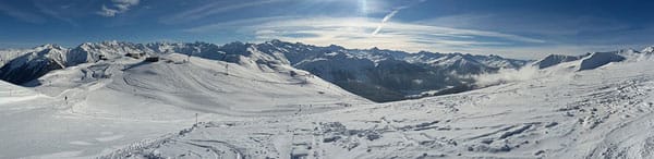 Und schon ist der letzte Skitag da… zwar wieder ohne Guiding, aber nun kennen wir ja alle Gebiete, und so wollen wir noch einmal in unserem kleinen Grüppchen den Tag genießen und den gemeinsamen Urlaub ausklingen lassen. Leider hat die Erkältungswelle sich ein wenig im Haus verbreitet, so dass wir nur zu zweit fahren. Aber es wird ein herrlicher Tag mit tollem Sonnenschein und wieder einer schönen Kaffeepause in einer fast leeren und sonnenbestrahlten Hütte.