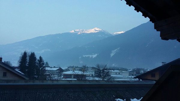 Nach einem ruhigen ersten Skitag bezogen wir unser Zimmer, welches in der 3. Etage des Hauses lag. Da es keinen Aufzug gibt, mussten die Koffer hoch getragen werden - aber dafür hatten wir vom Balkon einen direkten Blick auf die Berge. Der lohnte sich besonders morgens, da die Bergspitzen in der aufgehenden Sonne schon eine toller Anblick sind.