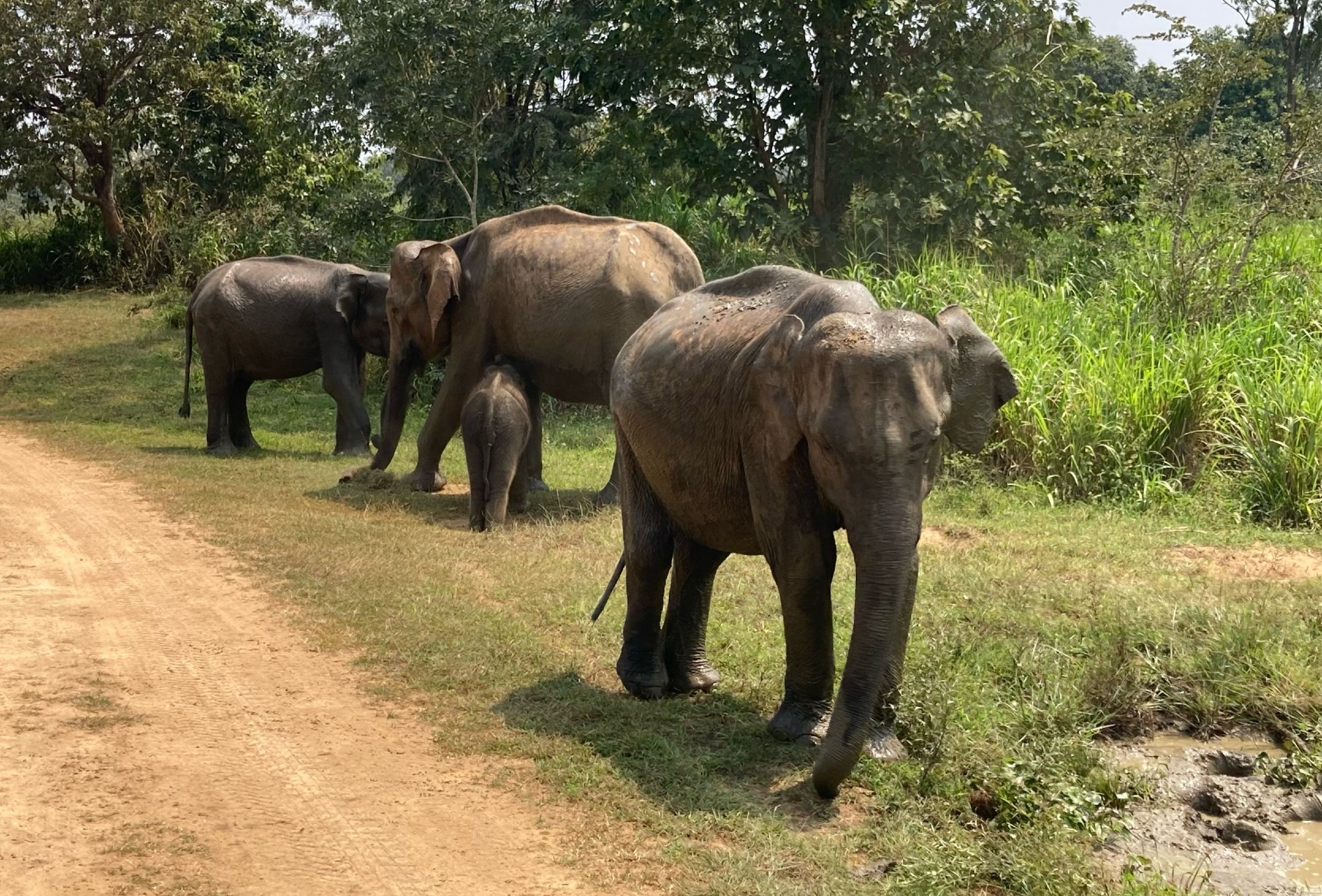 Am folgenden Morgen kam dann schon eines meiner persönlichen Highlights: Die Wanderung zur Felsenburg Sigiriya. Der frühe Aufstieg (noch bei Dunkelheit) über die vielen Stufen und weiter oben teils abenteuerlichen Treppen wurde durch einen der schönsten Sonnenaufgänge über einer traumhaften, tropischen Landschaft belohnt. Upendra kannte auch hier oben, wie so oft, the best place to be. Der Tag ging entspannt am Pool weiter oder, wer wollte, noch bei einer Wanderung auf den Berg gegenüber von Sigiriya. Für den Abend war eine Folklore-Tanzshow im Programm. Der nächste Tag bescherte uns großes Elefanten-Glück auf der Safari in einem Nationalpark. Die Dickhäuter von so nah zu sehen war doch auch ein Highlight!