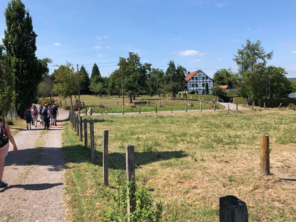Die ersten 1,5 Stunden gingen dann erst durch eine Siedlung, über einen Spielplatz und dann etwas waldig. Wobei das Waldgefühl durch viel Asphalt etwas eingeschränkt ist. Es geht zwar zwei mal etwas hoch und wieder runter, tatsächlich hat aber die ganze Wanderung nicht mehr als 200 Höhenmeter und die Steigungen sind schon wieder vorbei, bevor man sie wirklich wahrgenommen hat.