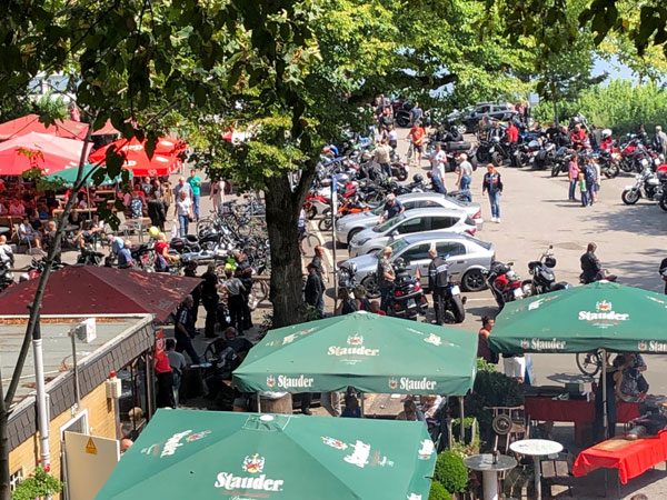 Eine halbstündige Pause wurde dann am Haus Scheppen eingelegt. Hier trifft einen dann der Kulturschock oder was man unter Kultur verstehen mag. Nachdem man eine Zeit lang am Ufer entlang gewandert ist und bereits auf Radfahrer acht geben musste, die über den Weg schossen, plötzlich eine Straße, voll mit Autos, in erster Linie aber Motorrädern.