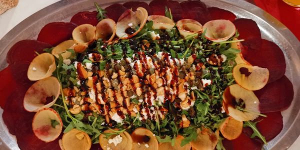 Als nächstes wurde der Salat serviert: meistens verschiedene Blattsalate als Basis mit immer unterschiedlichen Toppings, z.B. getrocknete Aprikosen und Feta, und immer hausgemachte Dressings. Meine Favoriten waren der Caesar’s Salad und das Rote Bete Carpaccio.