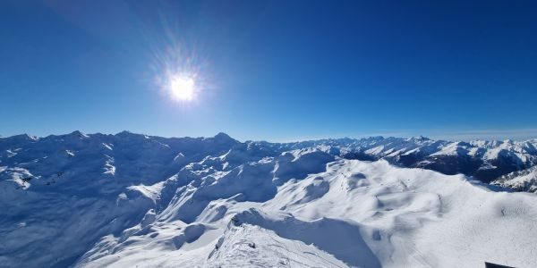 Dafür freuten wir uns umso mehr auf den nächsten Tag, an dem wir am Skiguiding mit einer Frosch-Teamerin teilnahmen. Die Wolken mit dem Nebel lichteten sich, die Aussicht wurde grandios, und unser Guide führte uns auf die besten Pisten. So sparten wir uns in diesem riesigen Skigebiet die mühselige Orientierung über eine App oder Pläne.