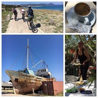 Die kurze Bike-Einweisung am nächsten Morgen hin uns gebracht, radeln wir auf saison-neuen Rädern gemütlich auf der Einführungsrunde nach Polis und in die nähere Umgebung. Die Lage verspricht angenehm anspruchsvolle Touren, eine Erwartung, die nicht enttäuscht werden soll, wie wir die nächsten Tage feststellen werden. Zum Ende der Tour treffen wir in der Stadt in Tinas idyllischem Café auf Agate und die Wanderer und genießen u. a. Joghurt mit Honig und Nüssen, zypriotischen Kaffee und unser Dasein als solches.