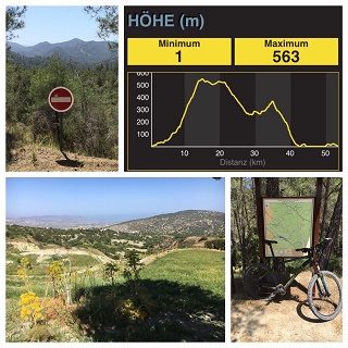 Die erste Tour über Aphrodites Bad zur blauen Lagune beinhaltet 2 schöne knackige Anstiege, auf der mittleren Tour zum Stausee sind es 9 km konstant bergan mit 9% Steigung, auf der letzten, langen, aber auch definitiv schönsten wird dieser Anstieg noch auf 14 km ausgedehnt.