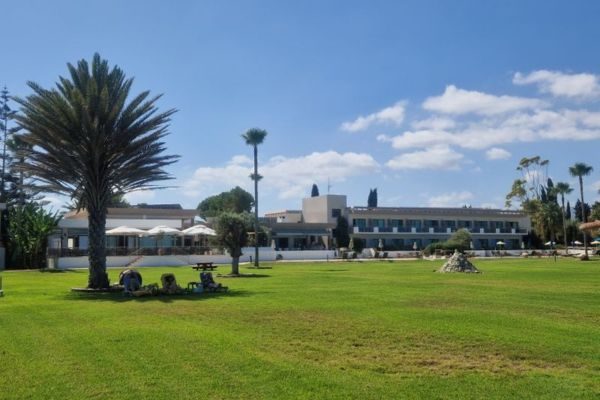 Wie schon oben erwähnt, hatte ich das Reiseziel Zypern besonders wegen des schön anmutenden Hotels ins Auge gefasst. Und ich wurde nicht enttäuscht. Mein Zimmer in der ersten Etage (mittleres Gebäude, Hotelanlage besteht aus drei Gästegebäuden und ein paar Villen drumherum) mit Blick auf das Meer und bis zum Horizont war wirklich sehr schön.